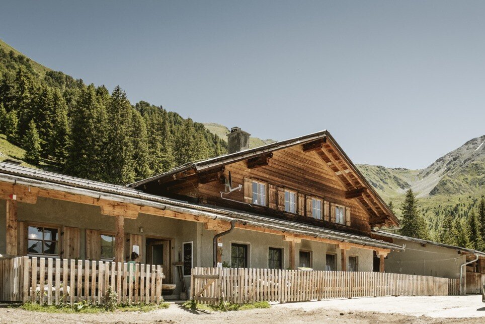 Ausgehend von der Greiter Säge am Eingang der Pfundser Tschey folgt man dem Wegweiser Richtung Gschneier Alm. Es verläuft ein Fahrweg in mehreren Kehren bergauf bis zur Gschneier Alm.