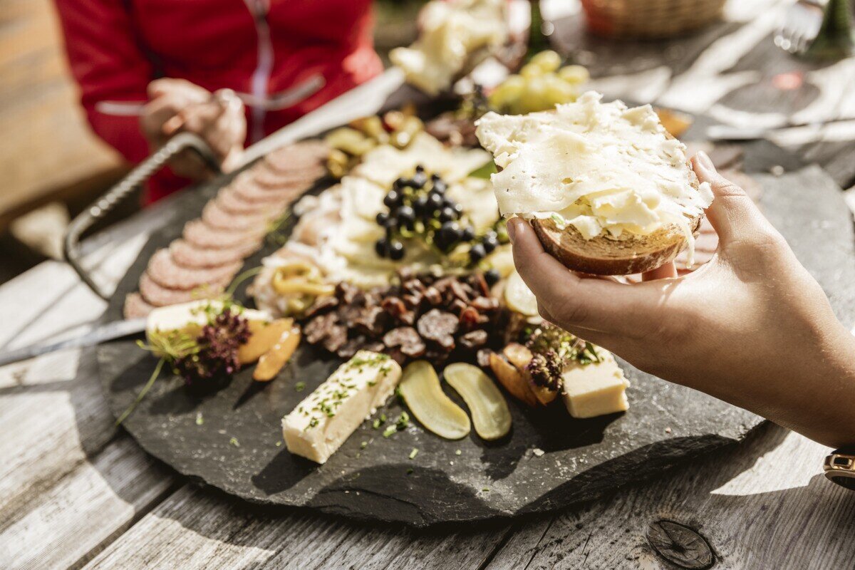 Der Weg führt entlang des Almwegs durch saftige Wiesen hinauf zur Kobler Alm. Oben angekommen lädt die Alm mit ihrer sonnigen Lage und der beeindruckenden Aussicht zum Verweilen und Genießen ein.