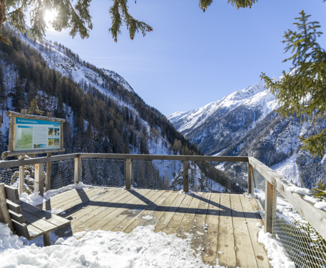 Das Kaunertal begeistert mit einem Königreich aus Dreitausendern, wilder und stiller Natur, Kultur und magischen Plätzen. Einer davon ist mit Sicherheit die „Adlerblick“ Aussichtsplattform. Diese wurde auf einer über 100 Meter hohen Felswand oberhalb von Feichten im Kaunertal errichtet. Darüber hinaus begeben sich die Wanderer auf eine Reise in die Vergangenheit: Zum einen beim ebenfalls neu errichteten Aussichtspunkt „Bergwerksblick“ und zum anderen beim Rundwanderweg zu den Knappenlöchern und der Aufbereitungshütte.