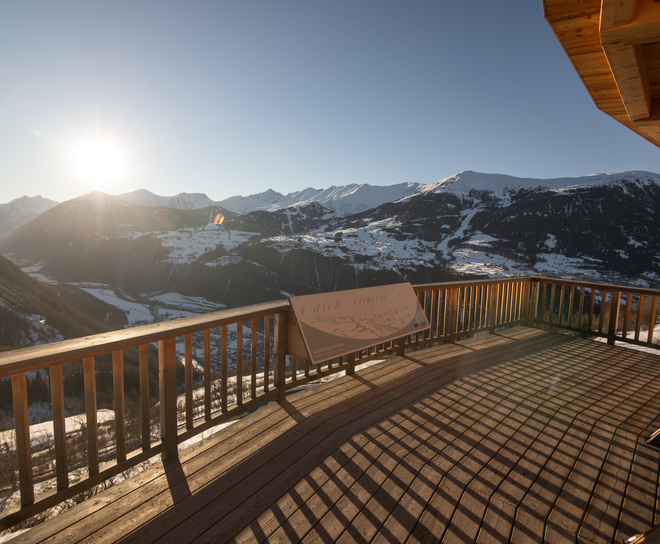 Einen wunderbaren Rundblick auf die umliegenden Bergwelt bietet die Aussichtsplattform Fendels "Hochegg". Verbunden mit einem Spaziergang durch das idyllische Bergdorf Fendels erreichen Sie die Plattform über den Rundweg Fendels.
