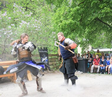 Aufregende Ritter-Duelle, spektakuläre Feuershows und die mittelalterliche Musik lassen die vergangenen Zeiten hochleben.