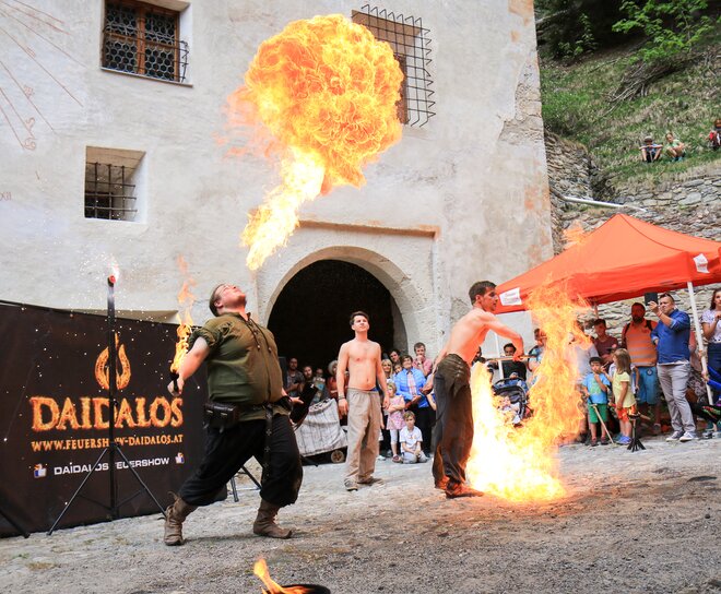 Altfinstermünz ist eine mittelalterliche Gerichtsstätte und Grenzbefestigung an der historischen Römerstraße Via Claudia Augusta. Die in den vergangenen Jahren aufwändig restaurierte Anlage begeistert durch ihre Bauweise und das noch heute spürbare, besondere Ambiente der damaligen Zeit. Eine Faszination, die alle Besucher des Mittelalterfestes in Altfinstermünz in ihren Bann zieht. Prinzen und Prinzessinnen, Ritter und Hofdamen, Gaukler und Narren – beim historischen Spektakulum fehlt es an nichts. Unter den Augen der Majestäten präsentieren die Künstler ihre Darbietungen und mittelalterliche Kämpfer ihr Können.