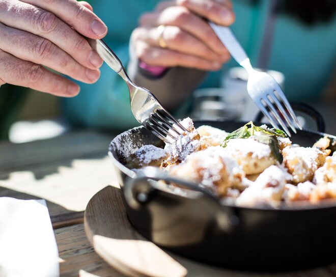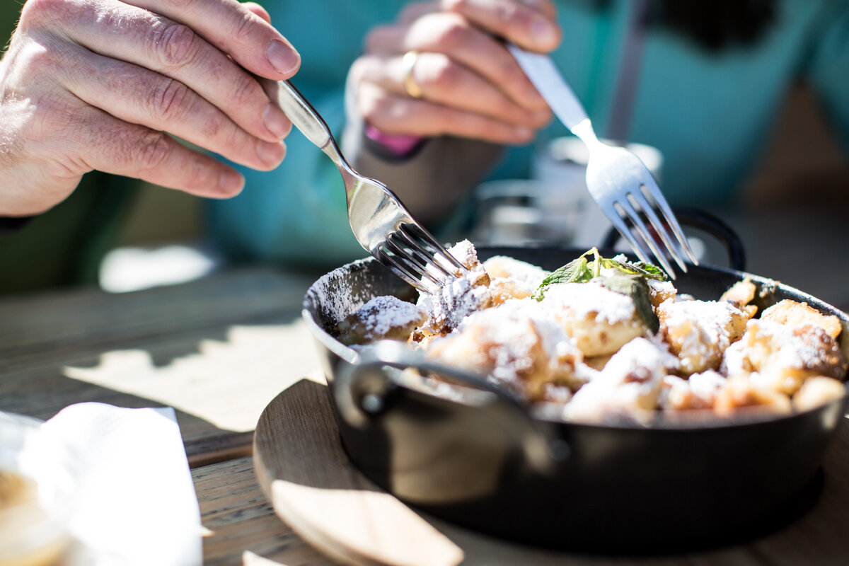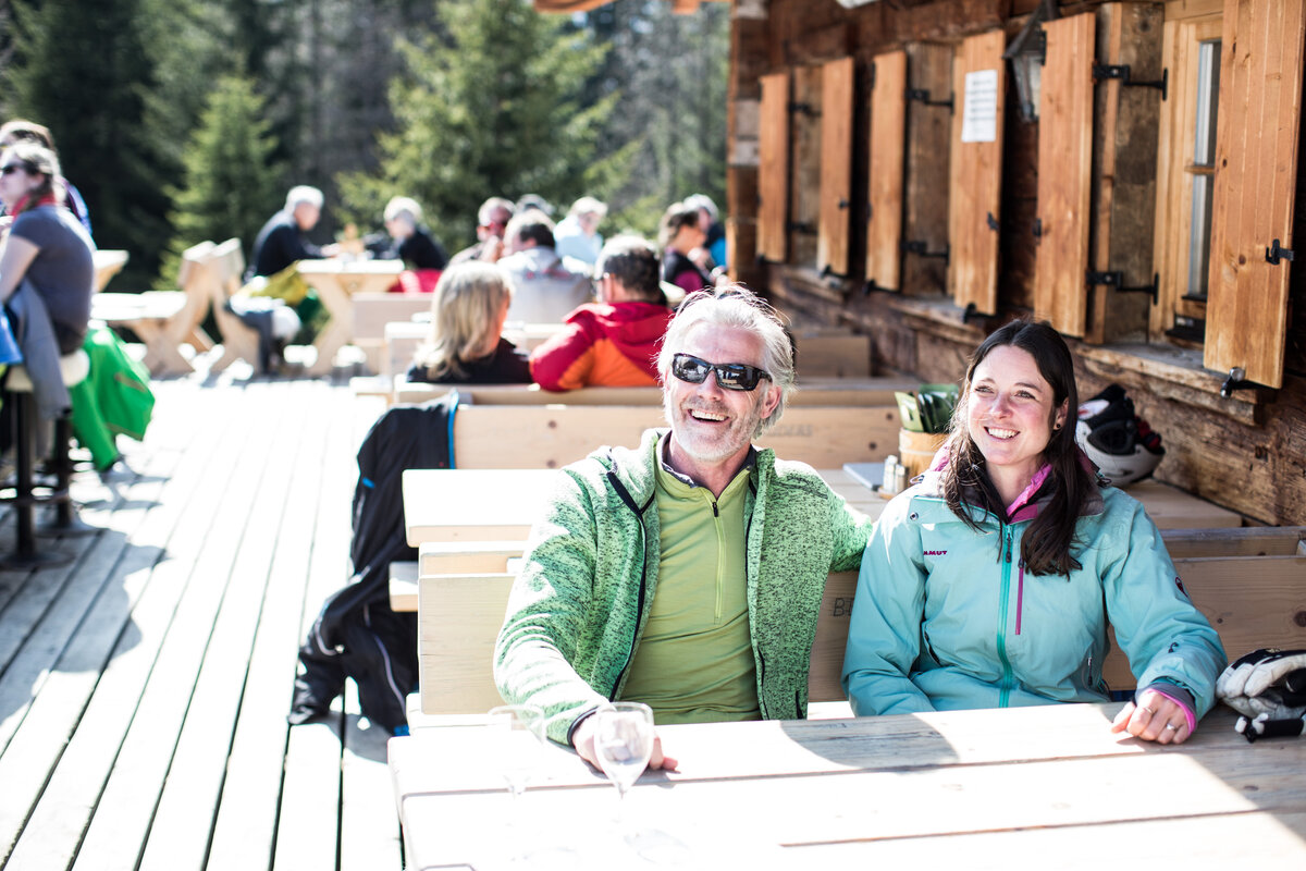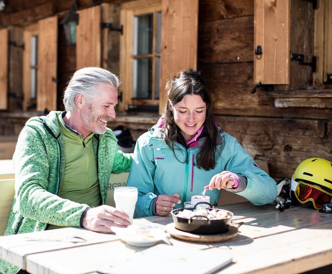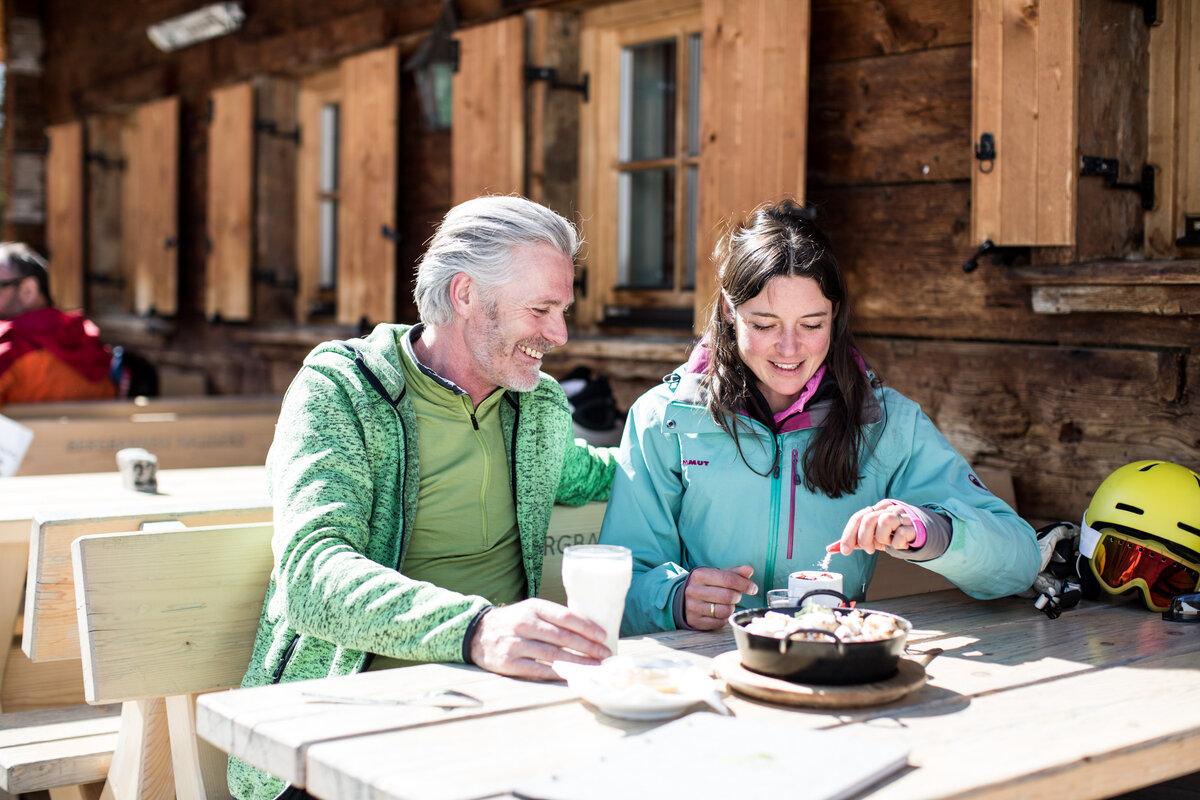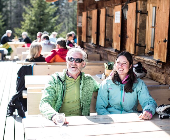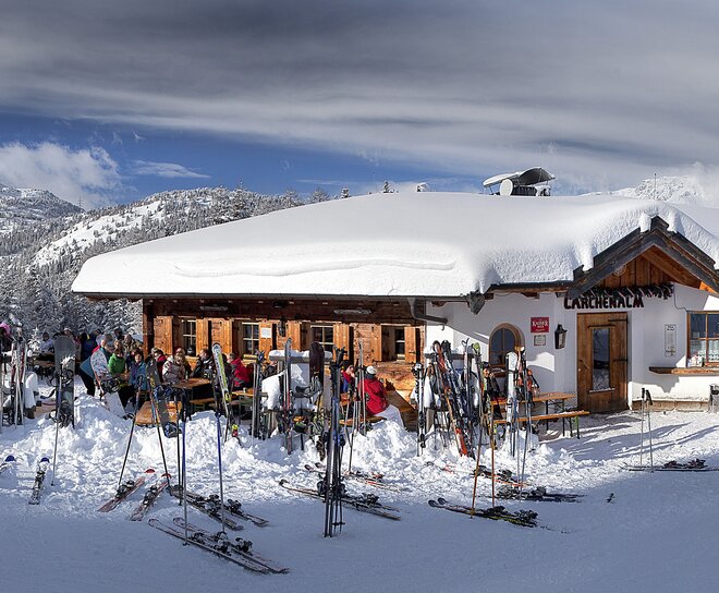 Die Lärchenalm verwöhnt Einkehrer im Innenbereich und auf der idyllischen Sonnenterrasse mit Tiroler Schmankerln und Spezialitäten.