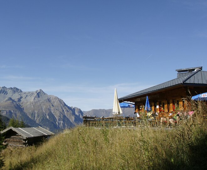 Die Lärchenalm erreicht man nach einer kurzen Wanderung über die Martanneswiesen oder über Kompatsch. Die Hütte ist sehr ruhig gelegen und bietet einen herrlichen Ausblick auf die schweizerische, österreichische und italienische Bergwelt.