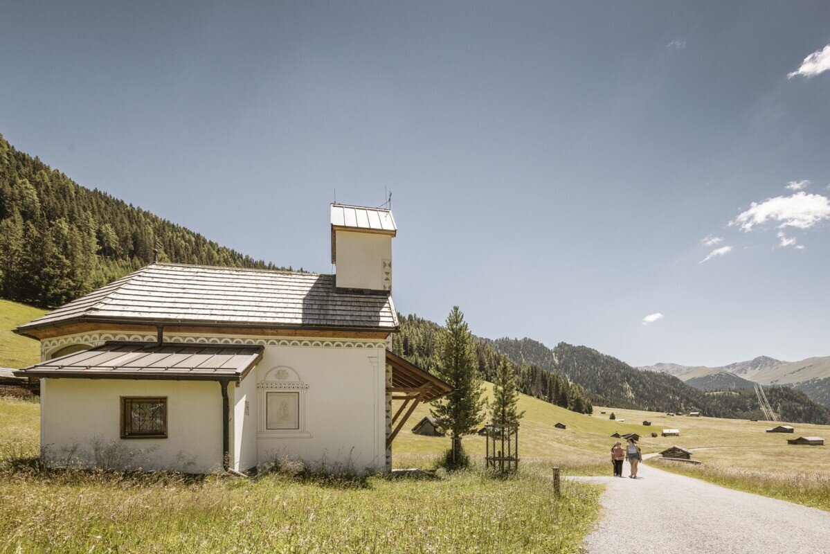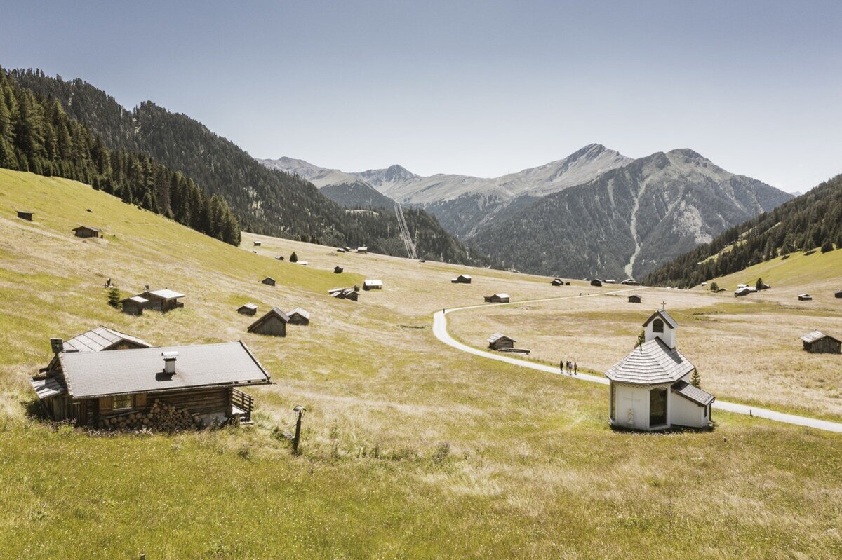 Von der Tscheylücke führt der leichte Spazierweg durch die malerische Landschaft der Tscheywiesen bis zur Kapelle Maria Schnee. Besuchen Sie diese bezaubernde Kapelle – unser Kraftplatz mitten in den Bergen, perfekt für einen Moment der Ruhe und Besinnung.