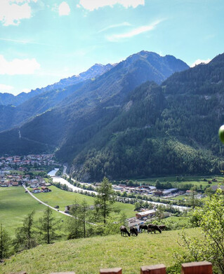 Nach einem kurzen Anstieg wandert man entlang des Wiesenweges mit fabelhaftem Blick auf den Schweikert im Nordosten und erreicht bald den Mairhof. Dort folgt man der Straße und biegt in der ersten Kurve nach links in Richtung „Talwanderweg Feichten“ ab. Der Weg verläuft nun unterhalb der etwa 600 Jahre alten Ögghöfe. Eine Wanderung hinauf zu den Höfen zu einem anderen Zeitpunkt ist wirklich empfehlenswert!