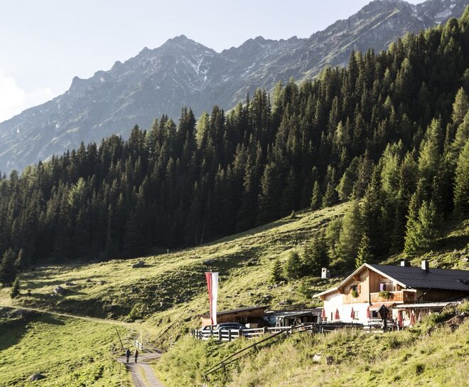 man sich beim Bach etwas erfrischen, bevor der letzte Teil des Höhenweges beginnt. Mit etwas Glück kann man Steinböcke oder einen Steinadler beobachten! Nach einem Downhill mit zahlreichen Serpentinen erreicht man die Verpeilalm. Über Trails und zum Schluss über einen Forstweg geht es nach Feichten, das Ende dieser grandiosen Tour.