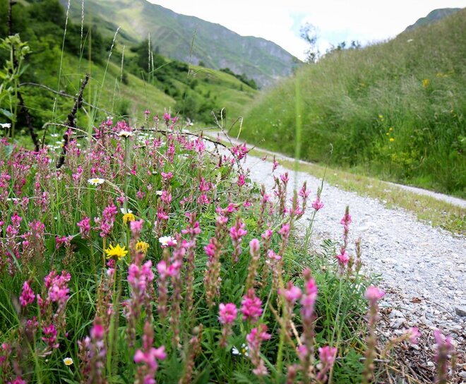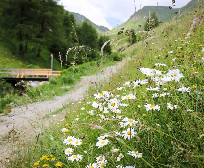 Beim Gasthaus Alpenrose in Spiss geht es rechts los, leicht ansteigend am Spisser Bannwald, bei imposanten 500- 600 Lärchen vorbei. Achtung Forststraße - Fahrverbot! Weiter geht es bis zur Mutta 2.100 m mit herrlicher Aussicht, weiter führt der Weg zum Walmutköpfl und dann zur Kälberhütte 1.922 m. Der Rückweg führt entlang des Kälberbergweges zur Forststraße nach Spiss.