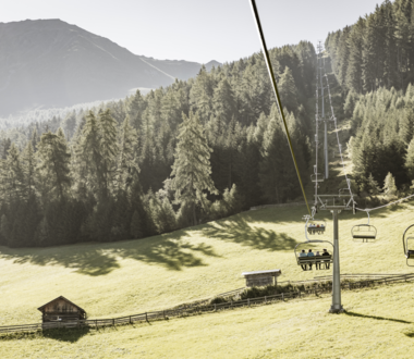 Schweben Sie fast lautlos mit der Vierersesselbahn direkt vom Dorf Fendels auf 1.874 m Seehöhe zur Bergstation Sattelklause und genießen schon bei der Auffahrt die Tiroler Naturlandschaft.
