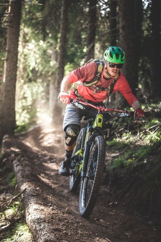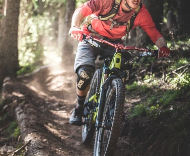 Zum Ausgangspunkt an der historischen Bunkeranlage gelangt man über den flowigen Plamorttrail. (Hier, hoch über dem Reschensee mit Blick ins Vinschgau und auf das Ortlermassiv, findet Ihr auch einen der legendären Foto-Spots.) Der rote Bunkertrail (S2) ist eine 4.4 Kilometer lange Ikone, teilweise neu angelegt, und startet mit einer schnellen Wiesenfahrt, bevor es technisch anspruchsvoll und steil wird. Er mündet schließlich in dem kurvenreichen Etsch Trail, der weiter talwärts nach Reschen führt.