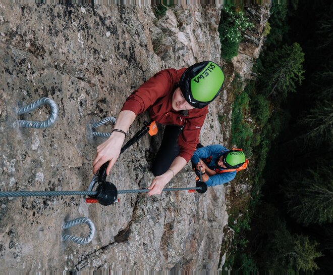 Direkt unter der Aussichtsplattform Adlerblick in Feichten, erwartet euch ein atemberaubendes Abenteuer. Der Kletterstieg Seitwand ist ca. 150 Meter lang und hat eine Schwierigkeit von C/D. Genießt eine herrliche Aussicht über das ganze Kaunertal. Der Klettersteig wurde zur besseren Orientierung in 3 farblich markierte Abschnitte unterteilt. (Grün, gelb, rot)
