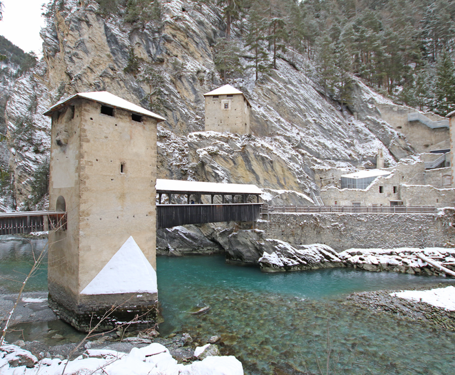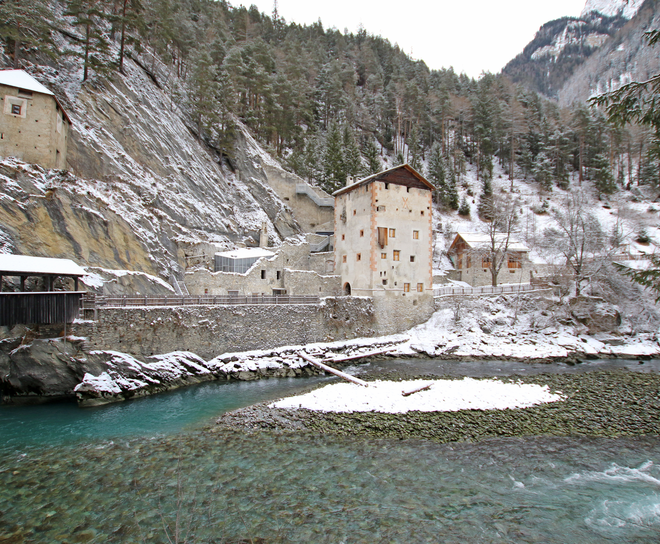 Finster? das war einmal. Durch sorgfältige Restaurierung präsentiert sich die ehemalige Grenz- und Zollstation als schmuckes und interessantes Denkmal des "dunklen" Mittelalters, das alle Besucher staunen lässt. Im Sommer geöffnet, im Winter einmal wöchentlich. Dank der neuen Radbrücke barrierefrei über den Rad- bzw. Wanderweg erreichbar.