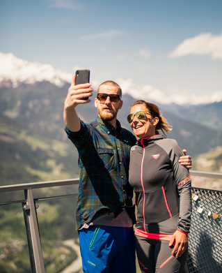 Auf 2.750 m Seehöhe angekommen gondelt man noch völlig barrierefrei mit der Karlesjochbahn bis auf 3.108 m hinauf. Direkt an der italienischen Staatsgrenze erleben Sie ein atemberaubendes Bergpanorama mit Fersicht!