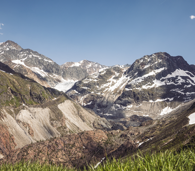 Schon die Fahrt entlang der Kaunertaler Gletscherpanoramastraße zum Gletscher auf 2.750 m Seehöhen bietet eine einmaliges Erlebnis. Fährt man doch durch 6 alpine Vegetatinsstufen - von saftig grünen Blumenwiesen, vorbei am Geptschstausee, uralten Zirbenwäldern bis an den Rand des Gletschereises.