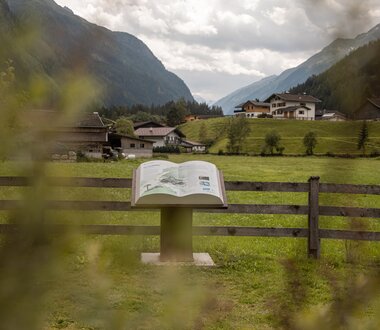 Wandern, Spazieren und gleichzeitig die Tradition, Kultur und Landschaft im Kaunertal erkunden: Überdimensionale Bücher erzählen Kindern und Erwachsenen, mitten in der Natur, spannende Ereignisse und Geschichten. Entlang beliebter Spazier- und Wanderwege im Tal findet man informative Wissens-Stationen.