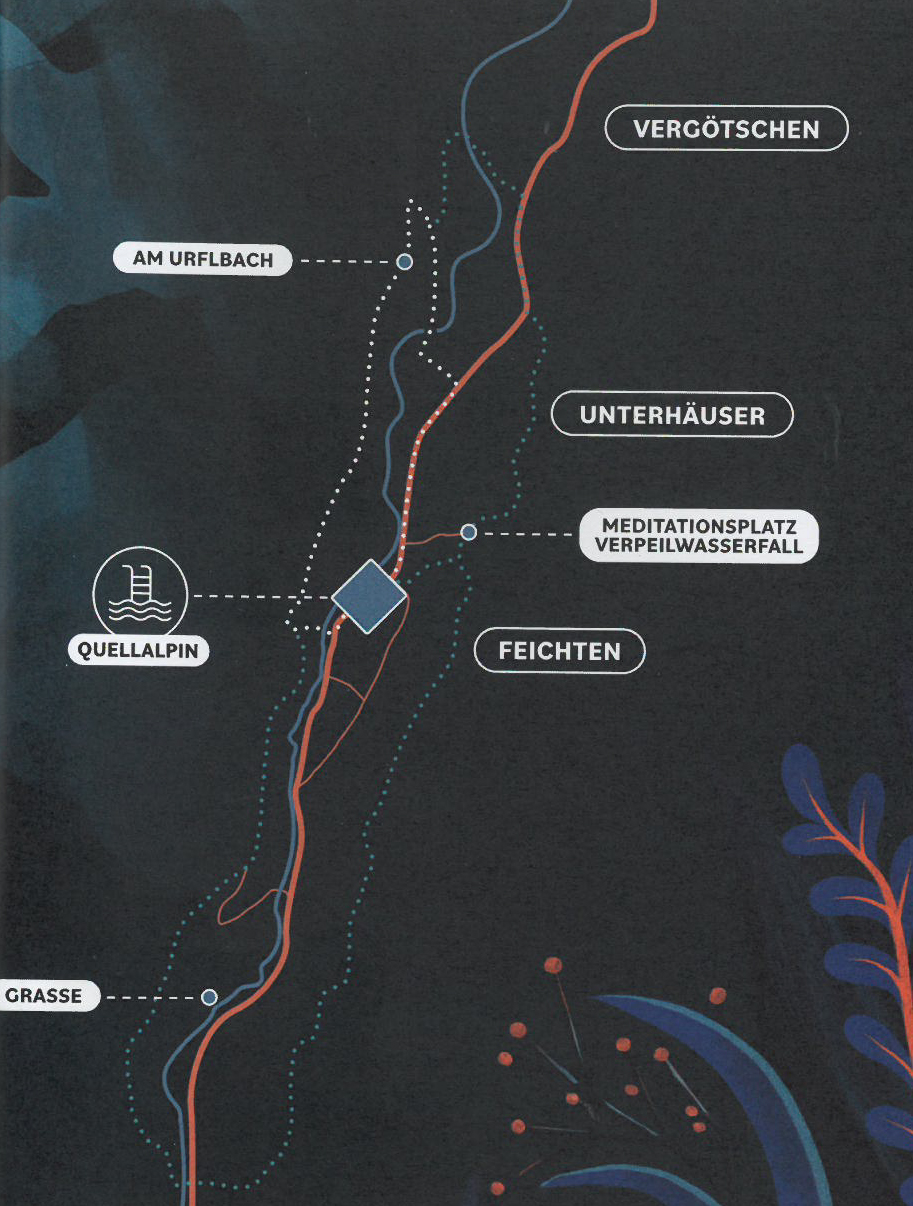 Der Meditationsplatz befindet sich direkt oberhalb von Feichten im Ortsteil Mühlbach. Speziell in der Nacht entfaltet das Rauschen des Wassers eine eigene Wirkung! Auf gemütlichen Holzliegen kannst du hier die Nacht auf all deine Sinne wirken lassen.