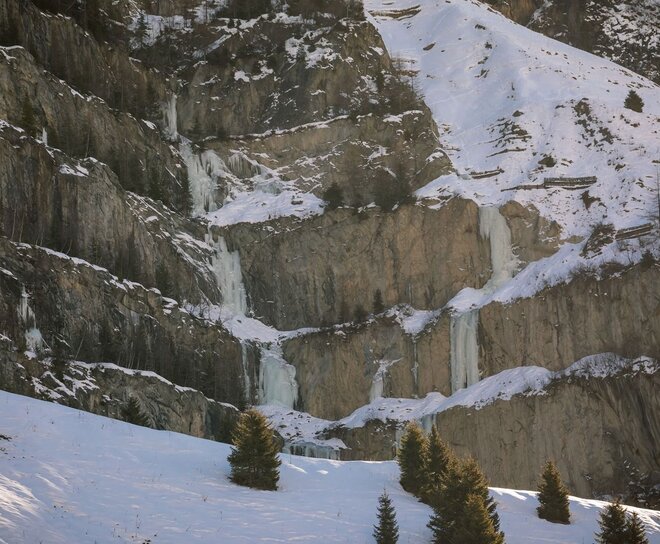 die kurzen aber knackigen, bis zu 20 m hohen Eissäulen können ganz schön "pumpig" sein!