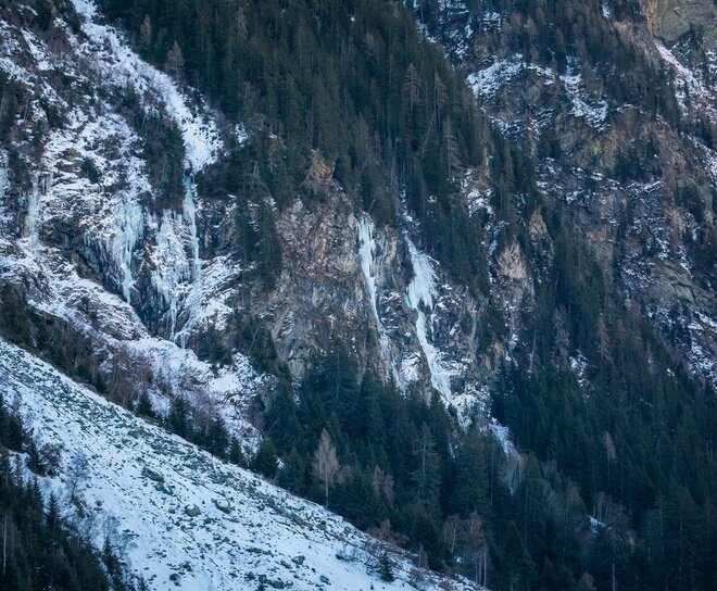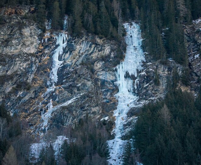 Spektakulärer Wasserfall der im unteren Teil leider nur sehr selten aufeist oder hinunterspült und deshalb kaum begehungen aufweist.