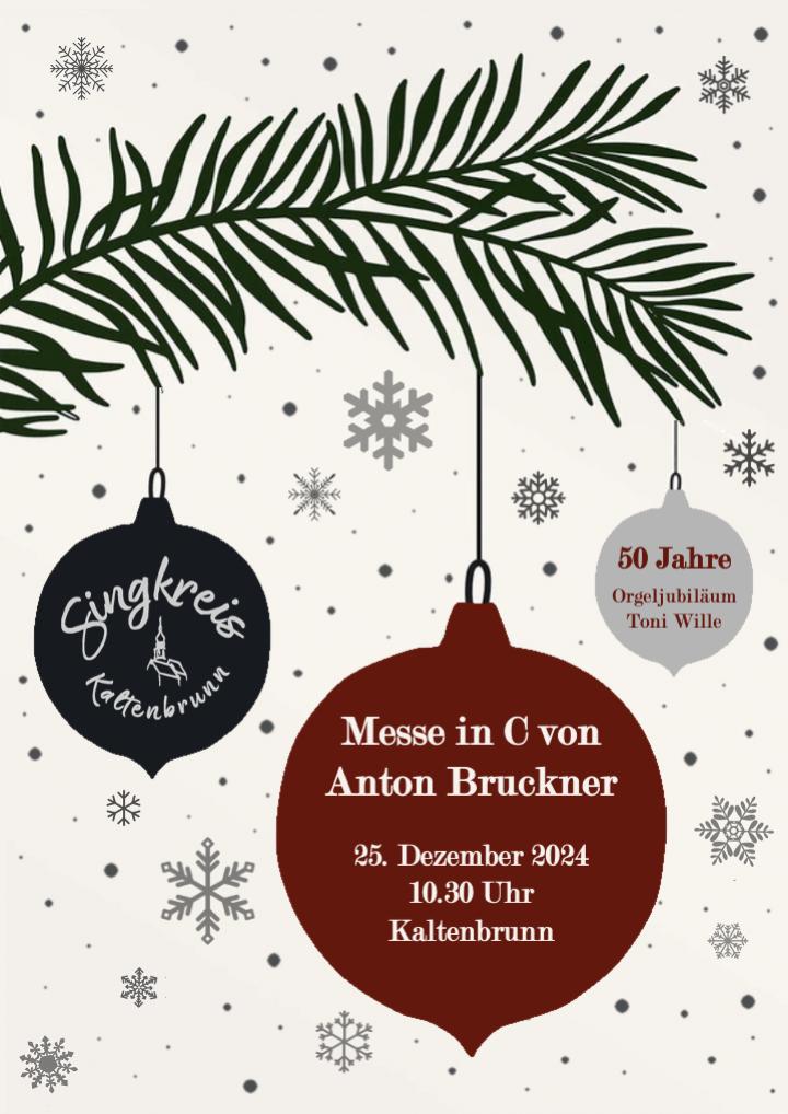 Festliche Messe in der Wallfahrtskirche in Kaltenbrunn - gestaltet vom Singkreis Kaltenbrunn - Messer in C von Anton Bruckner. Genießen Sie auch Orgelklänge von Toni Wille zu seinem 50 jährigen Orgeljubiläum.