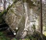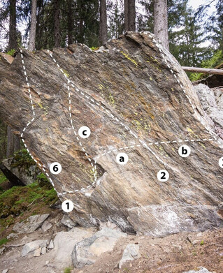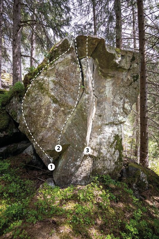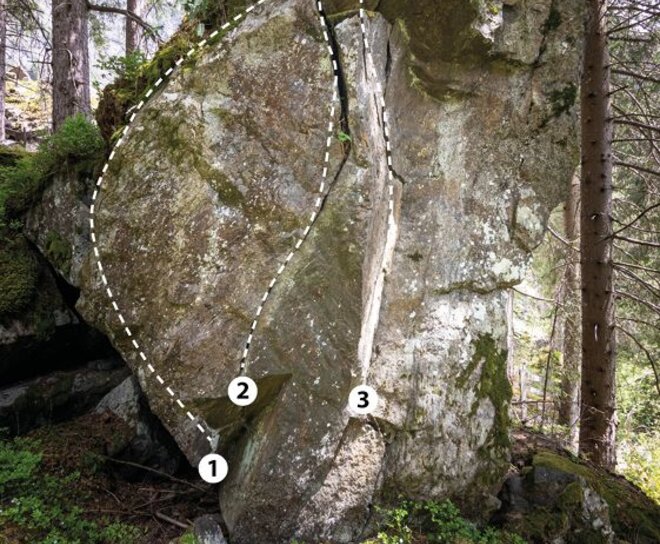 Bei diesem Block bewältigt man 3 Boulderprobleme mit einer Schwierigkeit von 5b - 6a+.