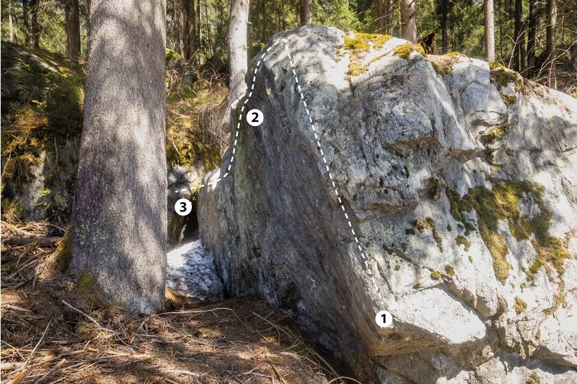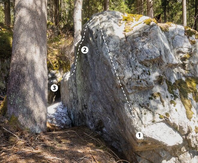 Bei diesem Block bewältigt man 3 Boulderprobleme mit einer Schwierigkeit von 4b - 6b.