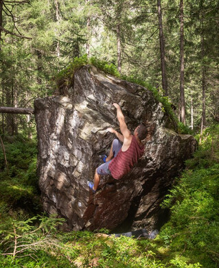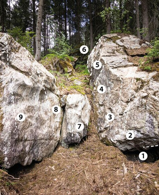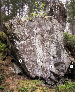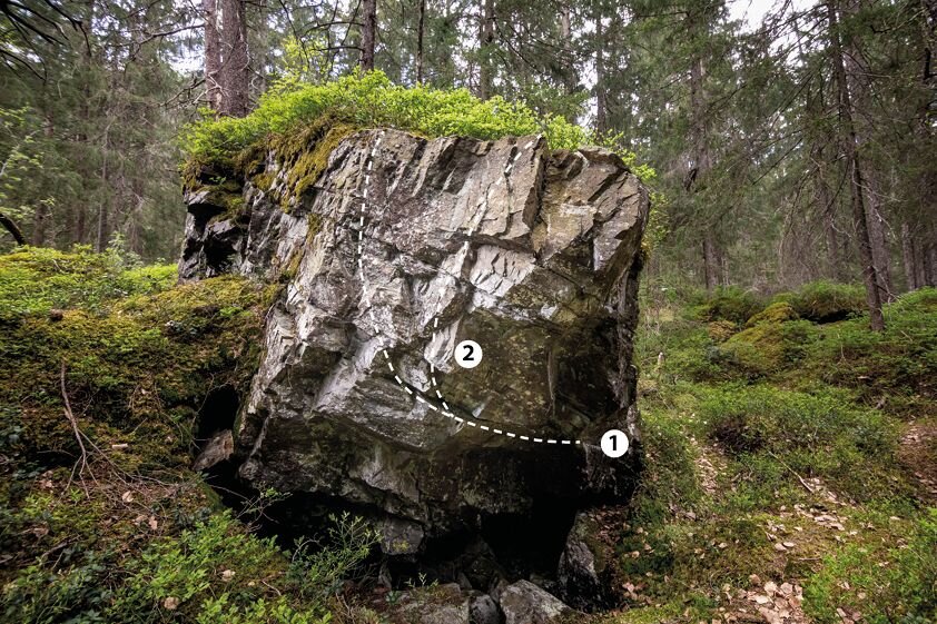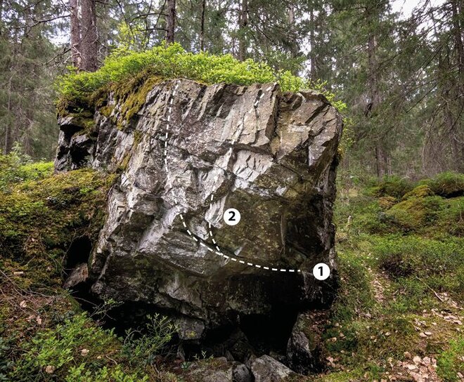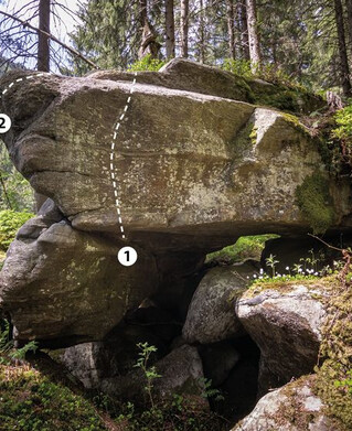 Bei diesem Block bewältigt man 2 Boulderprobleme mit einer Schwierigkeit von 6a+.