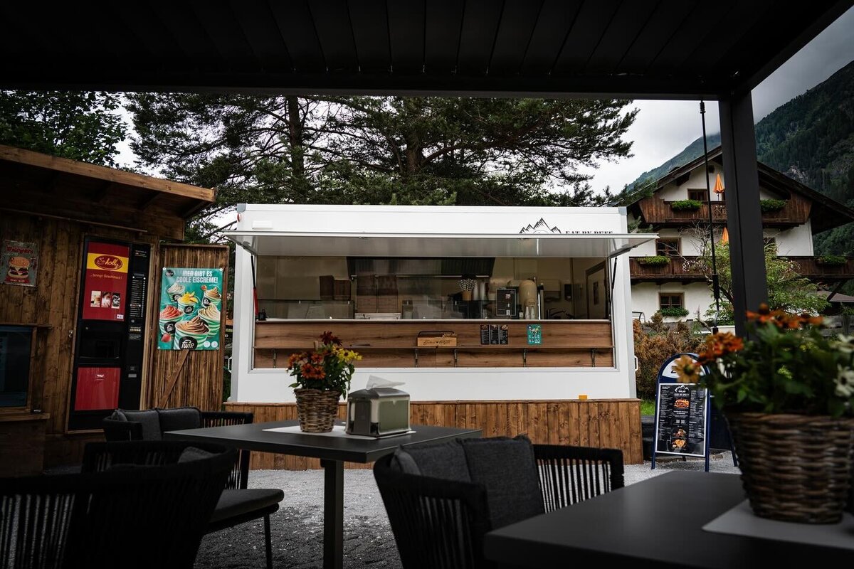 Eat by Pete - der Imbiss mitten in Feichten (outdoor). Köstliche Burger, Wraps und Pommes sowie Currywurst & Co erwarten euch im Kaunertal in Feichten. Zum Abschluss noch Eis & Kaffee? Kein Problem, auch das bietet euch Pete vom Foodtruck an.