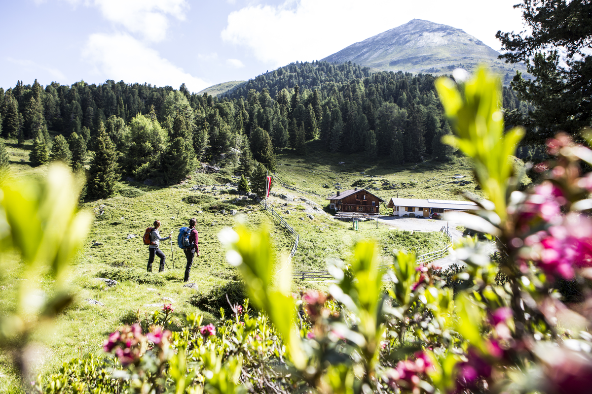 Von der Aifner Alm starten fünf abwechslungsreiche Routen: der Panoramaweg nach Falkauns, der Aufstieg zur Aifner Spitze, der Weg über die Kielebergalm nach Fuchsmoos, die Route zum Naturparkhaus Kaunergrat über den Harbe Weiher und der Abstieg über den Schnadiger Weiher nach Falpaus.