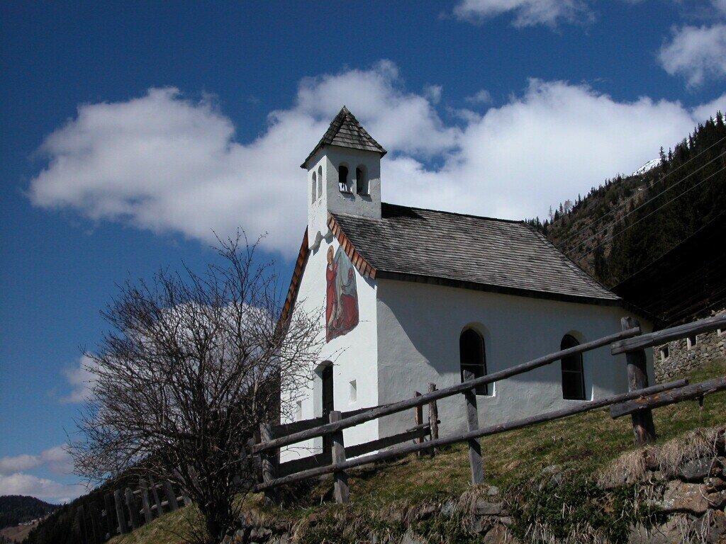 Kapelle im Weiler Prantach, großer einjochiger Bau mit 3/8-Schluss aus dem 17. Jahrhundert mit Nordturm an der Westfassade. Figuren von Adam Payr. Schnitzfigur einer Gnadenmuttergottes, der Sockel bezeichnet mit 1640. Betstuhl aus 1719