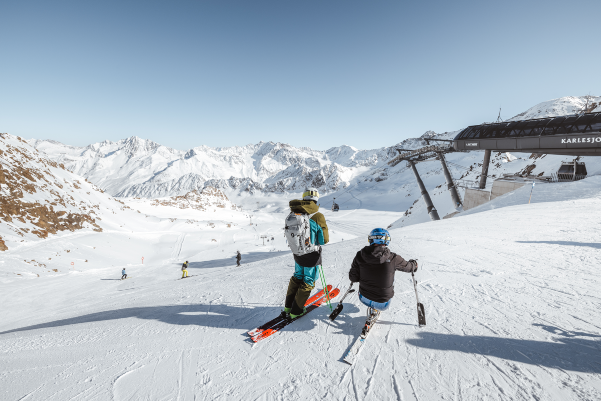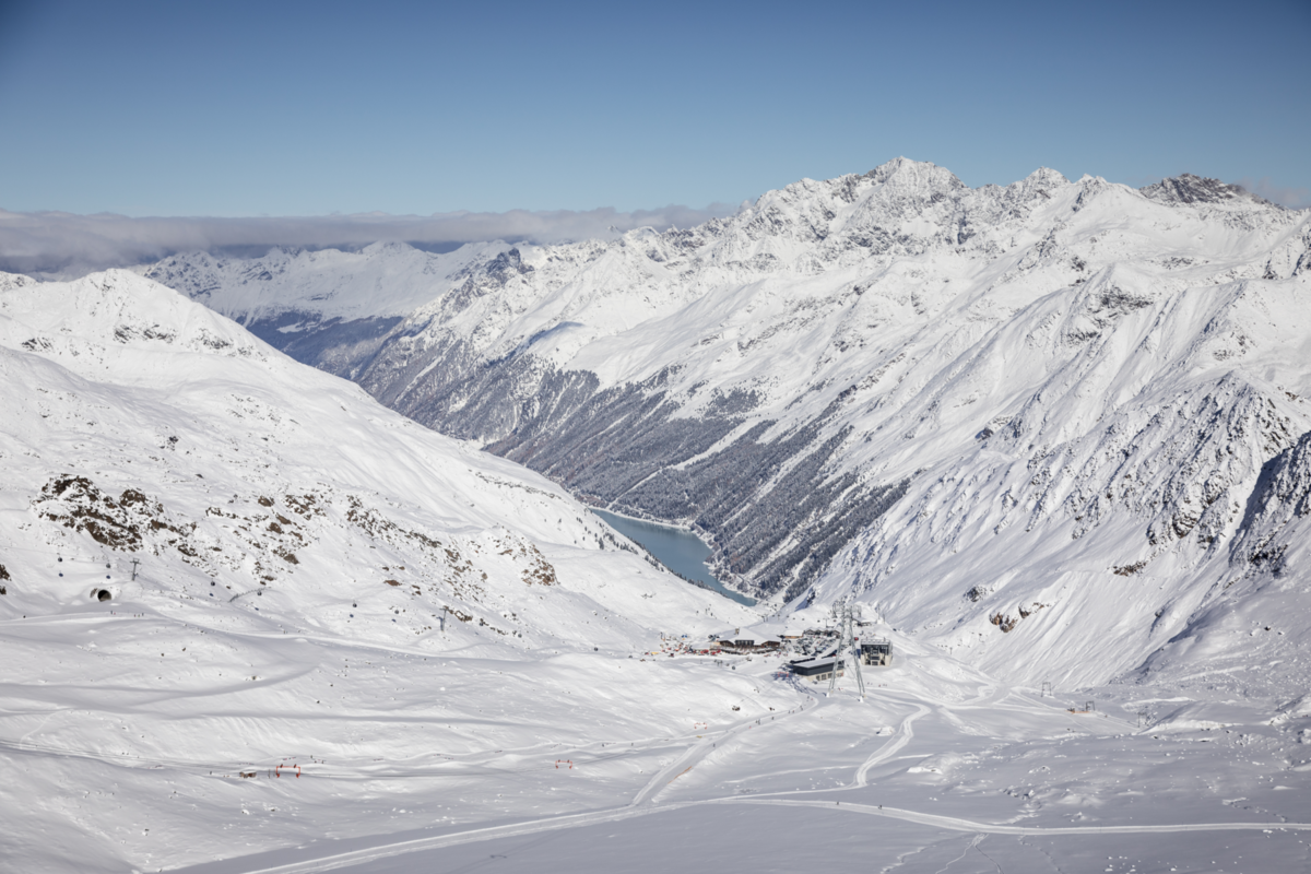 Der Gletscher bietet Schneesicherheit von Oktober bis Juni. Auf breiten, nicht überfüllten Pisten findet jeder Platz für seine Schwünge.