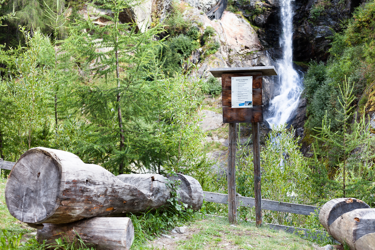Der Meditationsplatz befindet sich in Feichten/Ortsteil Mühlbach, am Fuße des Verpeilwasserfalls.