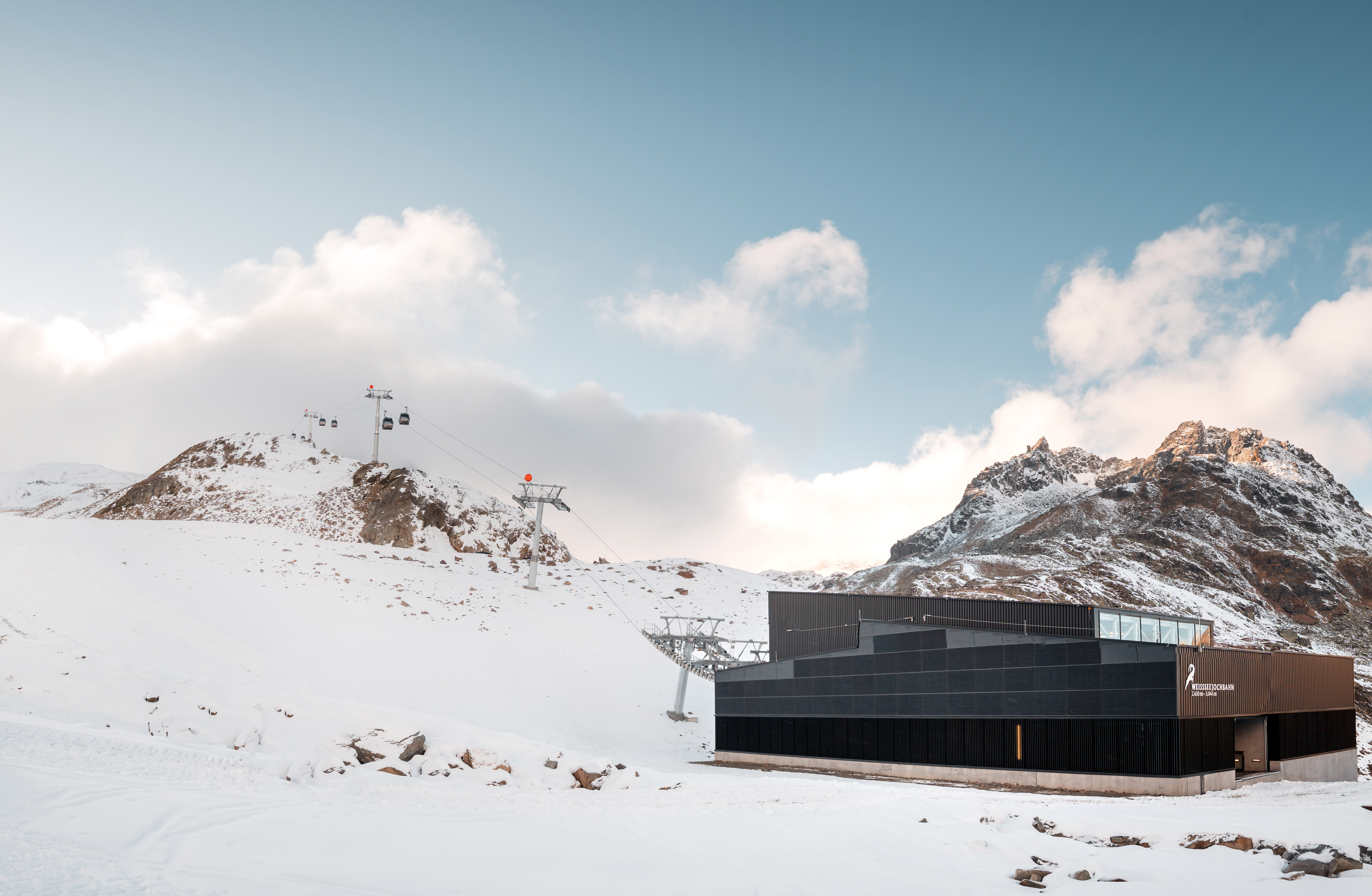 Am Ende eines Skitages werden Gondeln garagiert, also sicher geparkt. Normalerweise bedarf es dazu eines eigenen Gebäudes neben der Berg- bzw. Talstation oder eines entsprechend großen Talstationsgebäudes. Anders bei der Weißseebahn am Kaunertaler Gletscher: Berg- und Talstation wurden so geplant, dass sie möglichst klein gehalten sind und sich perfekt in die umliegende Bergwelt eingliedern. Zudem wurden mit der neuen Garagierung die Stichgleise links und rechts der Seilbahn so knapp an das Profil der Seilbahn herangeführt, dass auch alle 33 Gondeln in der Talstation auf engstem Raum garagiert werden können. Damit spart dieses System gegenüber konventionellen Lösungen 40% Raumvolumen. Ein eigenes Garagengebäude wird nicht mehr benötigt, das Talstationsgebäude konnte deutlich kleiner geplant und Bodenversiegelung vermieden werden. Mehr noch kann mit dem neuen System auf bis zu 41 Gondelkabinen aufgestockt werden, denn weitere 12 Gondeln können in der Bergstation garagiert werden.