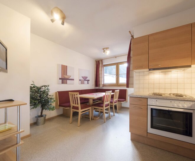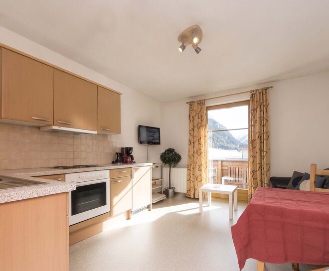 Ausstattung der Wohnküche: • Elektroherd mit 4 Kochplatten und Backrohr • Geschirrspülmaschine • Geschirrausstattung • Kaffeemaschine und Wasserkocher • Kühlschrank • Küchenhandtücher • Kleiner Tisch und Stühle am Balkon Service Bettwäsche, Handtuchset pro Person, Kabel-TV, WIFI, Balkon & Winter-TAL-Card.