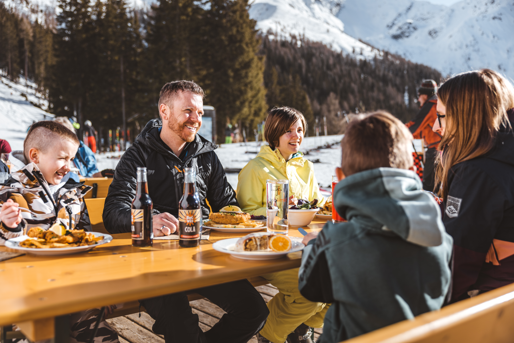 Skifahren bei strahlendem Sonnenschein in Tirol