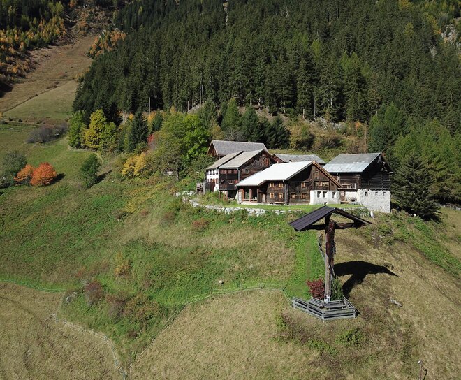 The Valley Cross at the Ögghöfen at 1,445 m above sea level, has a height of 9 m and 6 m width. The sculptor Robert Ehartsen from Flirsch carved the 5 metre body of Christ. The benefactor was Helmut Seykora from Kaunertal, son of Emma Seykora, nee Ragg, marksmen’s flag patron in 1904. The cross dedication service had as its theme “Protection and help in times of danger for the whole population of the valley” hence the name “Valley Cross”.