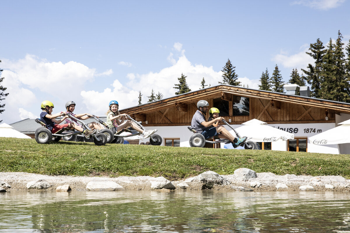 The popular winter toboggan run is converted into a fast mountain cart route in summer. There's no stopping it! The 4.5 km long drive offers action and fun for the whole family. The mountain carts and helmets can be rented directly at the Sattelklause mountain station.
