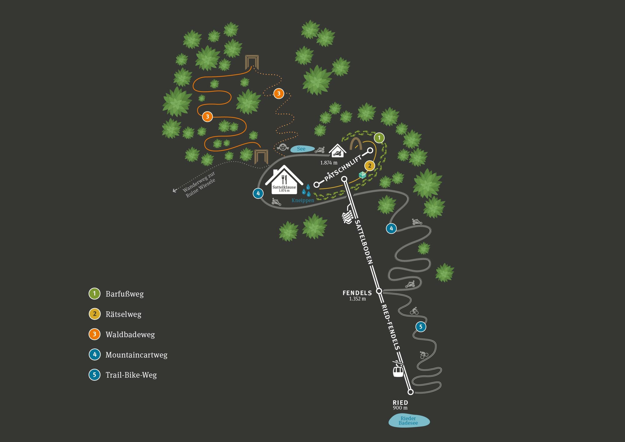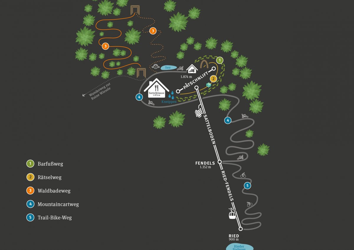 - Rental: the trail bikes are available at the valley station of the Ried-Fendels gondola or in the center of Ried in the Burtscher sports shop.