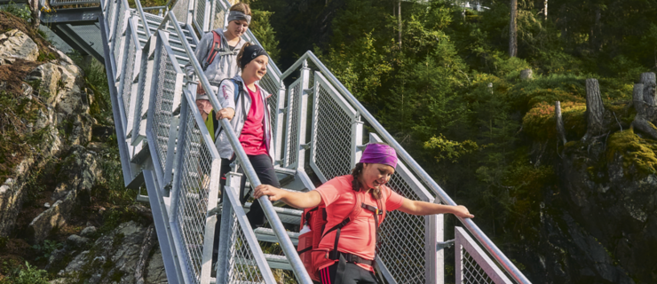 Along the Verpeilschlucht you follow the course of the water via stairs, narrow paths and a suspension bridge. There are always new perspectives on the cascades and waterfalls of the Verpeilbach. The gorge is crossed on a spectacular suspension bridge.