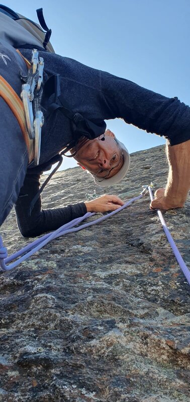 Safely out and about on a line with the mountain and ski guides on the rock and ice.