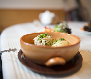 Bacon dumplings, cheese croquettes, bacon & onion fried potatoes, cheesy noodles, and Tyrolean ravioli... On your holiday in the Kaunertal you should try at least one of these Tyrolean delicacies. Other suggestions are the Marend, a cheese & charcuterie plate serve as an afternoon pick-me-up. You can also look forward to cheese specialities, bacon and smoked sausages, cold pork roast, lard, horseradish, and aromatic peasant bread.
