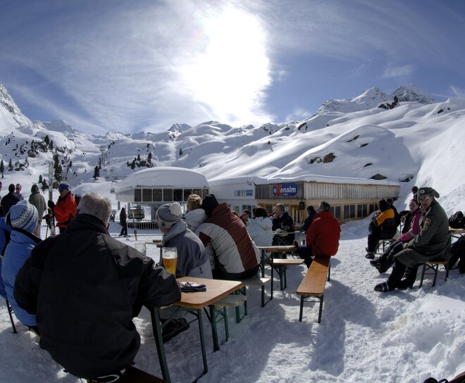 An der Talstation der Ochsenalmbahn am Kaunertaler Gletscher befindet sich das Restaurant Ochsenalm – ideal für bzw. gegen den kleinen Hunger oder für einen guten Cappuccino an der Bar.