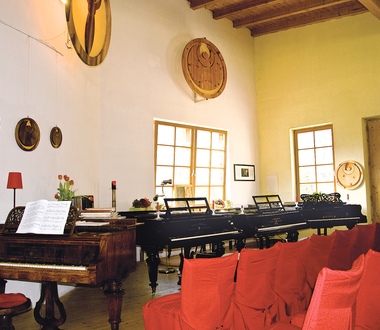 Was im Flügelmuseum ausgestellt wird? Genau, Flügel! Dabei ist das Museum nicht nur aufgrund des Grundrisses einzigartig: Es wurde in der Form eines Konzertflügels gebaut, und Anton Wille hat dort historische Flügel zusammengetragen. Der Organist, Holzkünstler und Bauer hat viele davon selbst renoviert und wieder zu neuem Leben erweckt. In seinem Flügelhaus gibt er auch regelmäßig Konzerte.