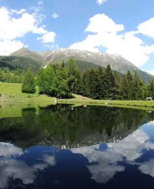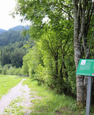 We start at the information office and walk towards Gasthof Riederstub'n. We follow the road over the bridge over the Inn and then turn into the 2nd road on the left. Here the path branches off to the right. After a short walk you will come to "Bibis Märchenwald" with biotopes, resting place and playground. Follow the path further until you reach a somewhat wider path. Turn right onto this path and follow it for about 600 metres until you reach a farm. Through a short stretch of forest the path leads you over an easy descent to the sheep wool spinning mill Schöpf. Via Claudia Augusta takes you back to Ried.