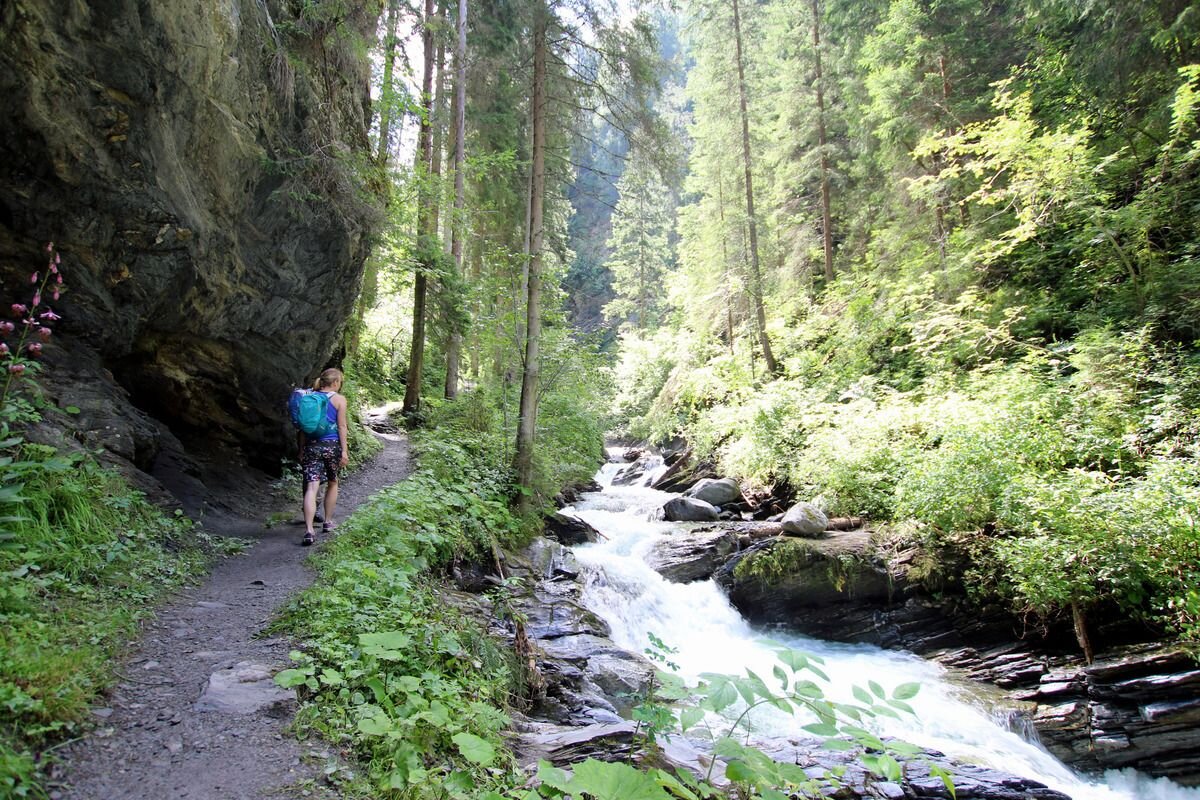 From the information office Pfunds you walk towards the village, over the bridge over the river Inn with the tower "Turaloch" up towards the village. Turn left towards the Dorf roundabout. From the roundabout it goes upriver towards the edge of the forest. Here is the beginning of the Klammsteig, a wildly romantic, unique gorge with several bridges and a suspension bridge, thunderous waterfalls and overhanging rocks. At the end of the gorge, a path branches off to the right towards Radurschlweg. Continue along the forest road towards Pfunds until a path branches off to the right into the forest. Here stands the St. Ulrich's Chapel from where the Way of the Cross starts back to Pfunds.